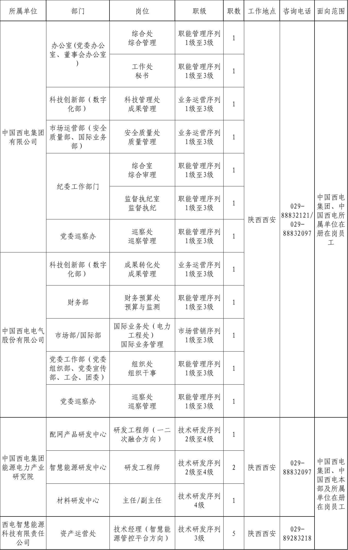 本次面向公司内部公开招聘岗位信息如下: