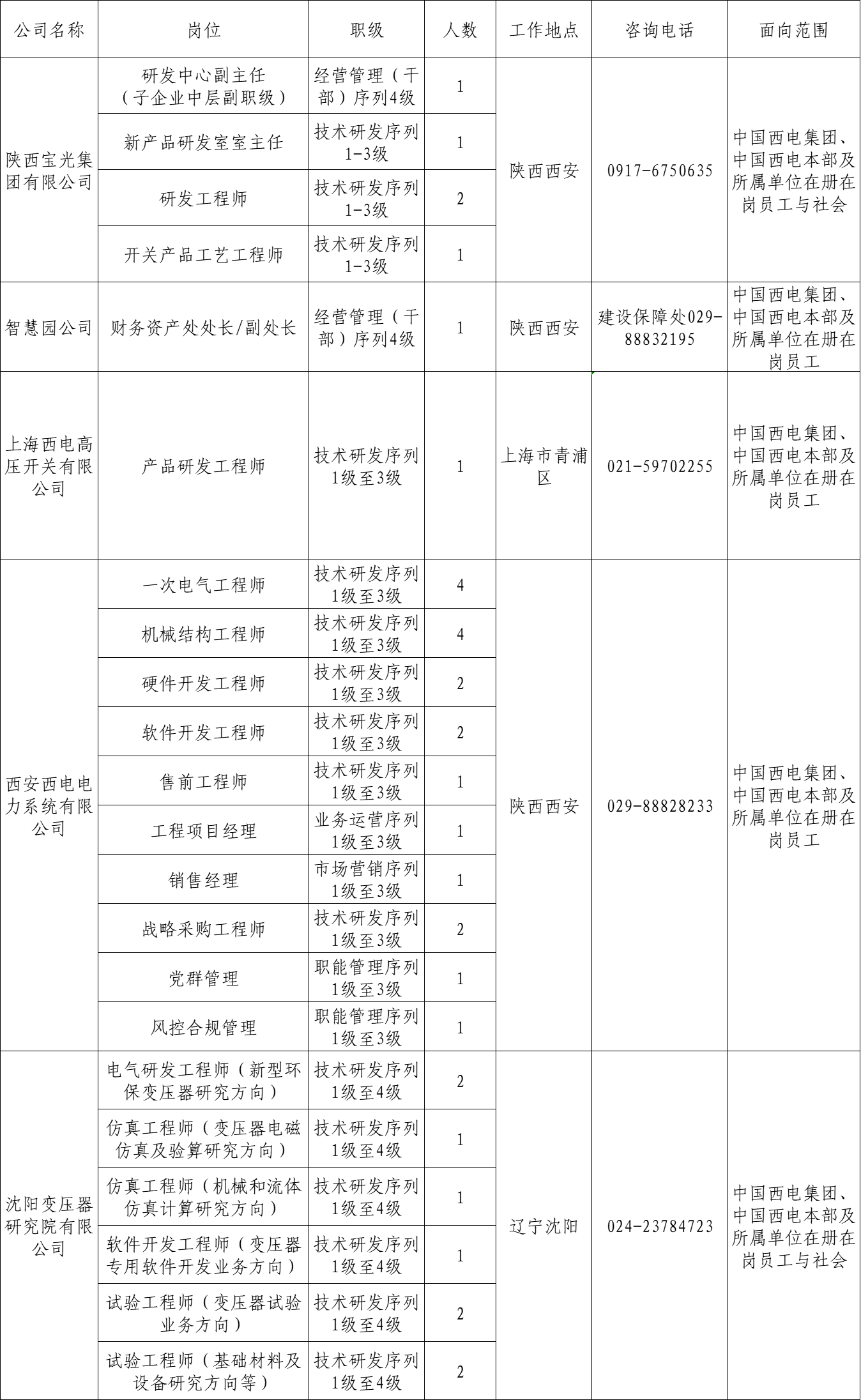 本次面向公司内部及社会公开招聘岗位信息如下: