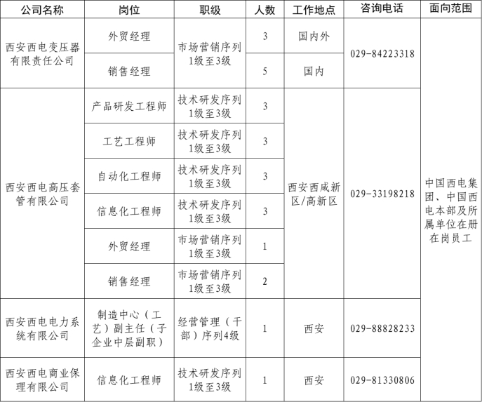 本次面向公司内部公开招聘岗位信息如下: